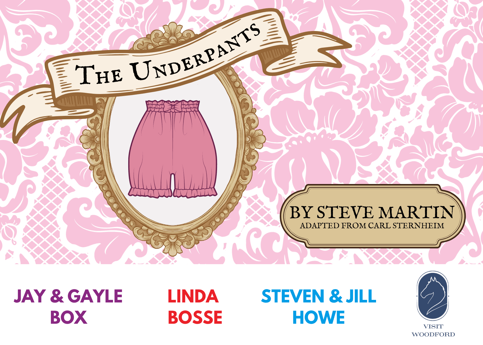 Steve Martin, the renowned comic actor and author of Picasso at the Lapine Agile provides a wild satire adapted from the classic German play about Louise and Theo Markes, a couple whose conservative existence is shattered when Louise‚ bloomers fall down in public. Though she pulls them up quickly, he thinks the incident will cost him his job as a government clerk. Louise‚ momentary display does not result in the feared scandal but it does attract two infatuated men, each of whom wants to rent the spare room in the Markes home. Oblivious of their amorous objectives, Theo splits the room between them, happy to collect rent from both the foppish poet and the whiny hypochondriac.